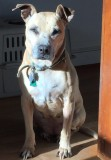 Baby was The Queenie Foundation's Dog in Residence. We are an animal rights nonprofit organization that focuses on humane education and rescue/adoption. She was rescued from the street by one of our volunteers, but was never adopted because of her breed, Staffordshire Terrier. We wanted to make sure that she got the right home and it turned out the right home was with our founder with The Queenie Foundation as her guardian.